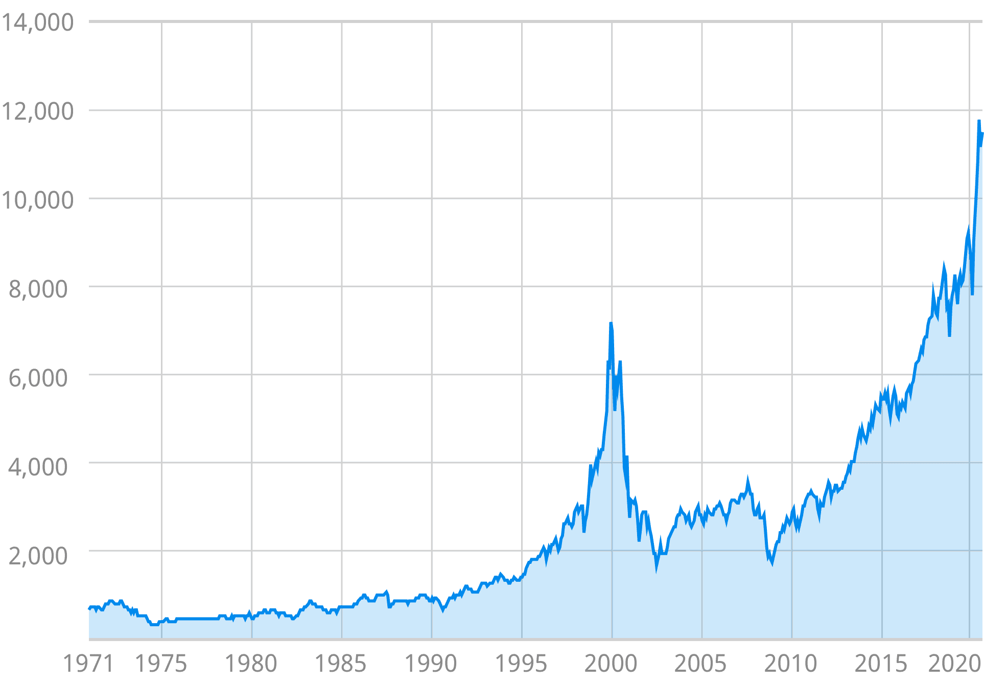 納斯達克綜合指數過去45年的歷史圖表